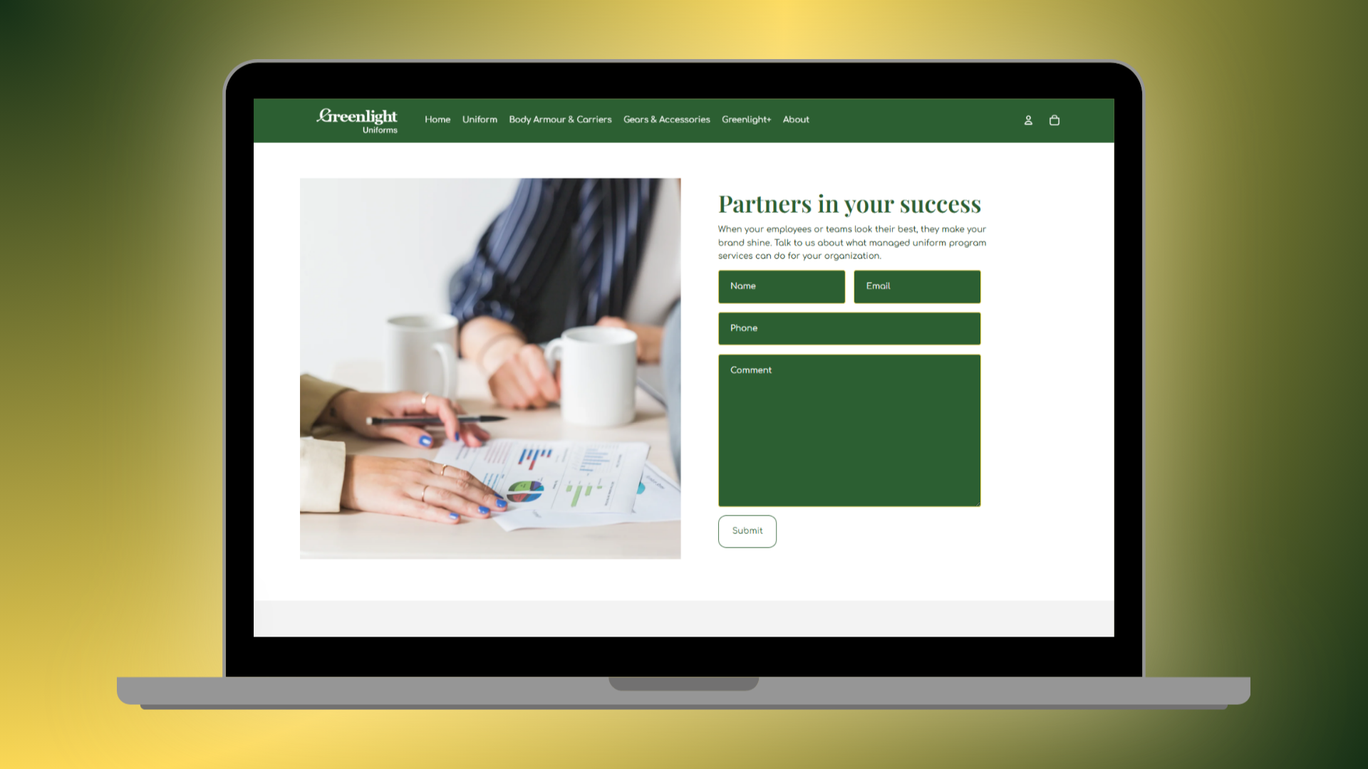 We partnered with Greenlight Uniforms to create a modern eCommerce experience tailored for both individual buyers and organizations. The goal was to elevate the brand while building a system that supports large-scale uniform distribution.