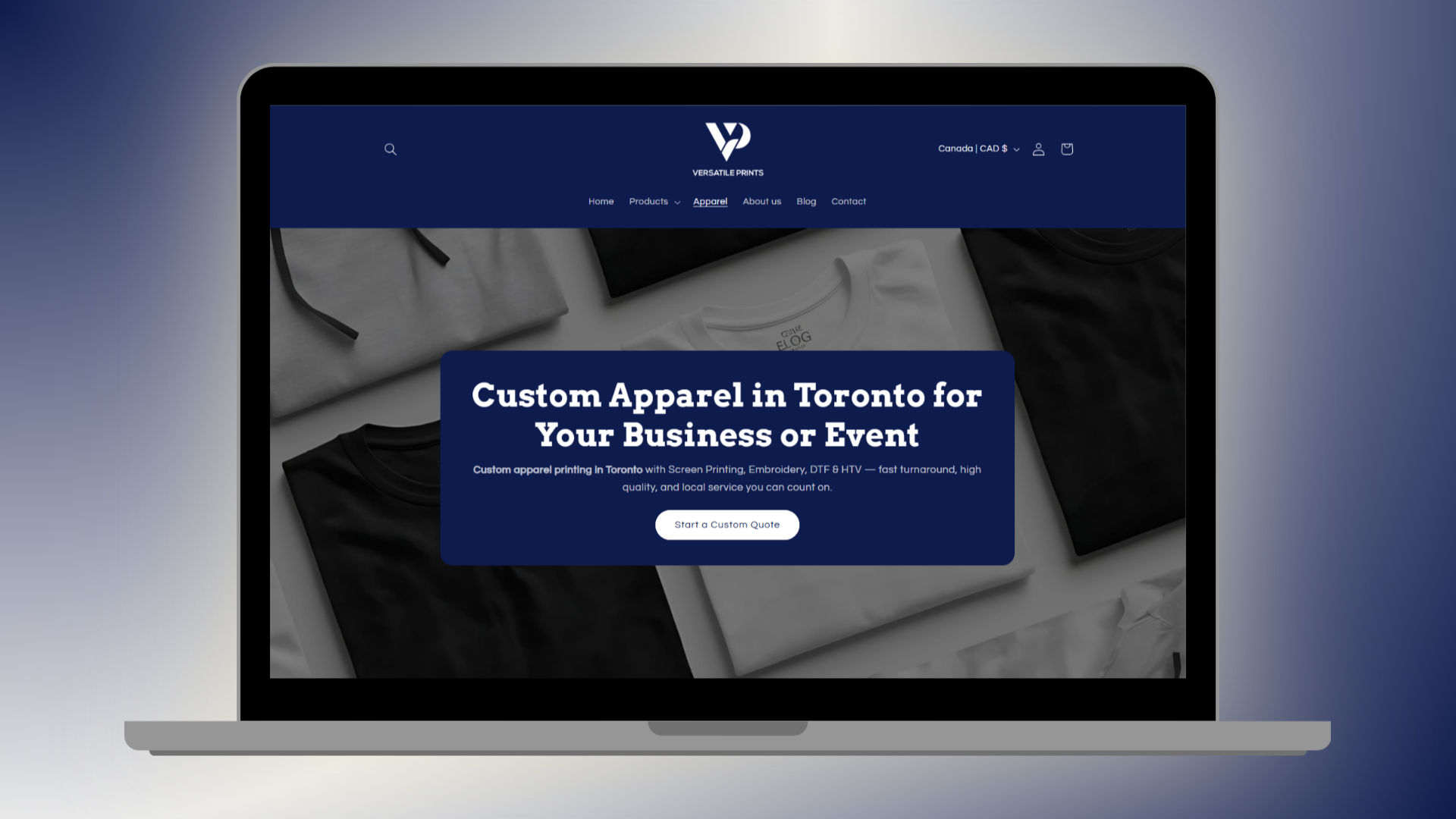 We partnered with Versatile Prints, a Toronto-based custom printing studio, to design and develop a modern website that reflects their creativity and professionalism. The objective was to clearly present their full range of services, from apparel to signage, while creating a seamless and engaging user experience.